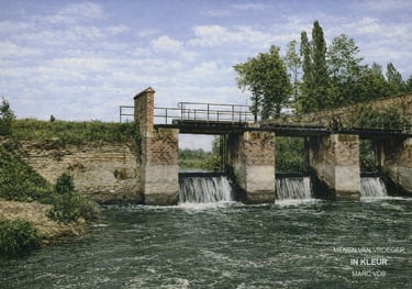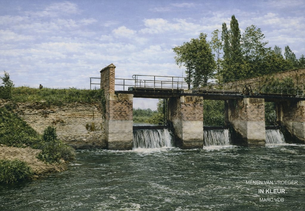 Op deze tweede foto zie je de déversoir de l’usine Jackson. Deze bevond zich aan de achterkant van de fabriek en werd afgebroken bij het rechttrekken van de Leie in de jaren '20.
