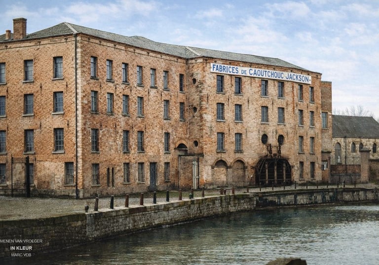 Van middeleeuwse waterkracht tot industriële pionierssite (pre-VTI St-Lucas) Langs de Oude Leielaan in Menen, op de plaats waar vandaag het VTI St-Lucas gevestigd is, lag tot het begin van de 20ste eeuw een bijzondere industriële site: de Jackson-rubberfabriek, gebouwd bovenop de resten van een veel oudere watermolensite, bekend in erfgoedregisters als de Leiemolens.