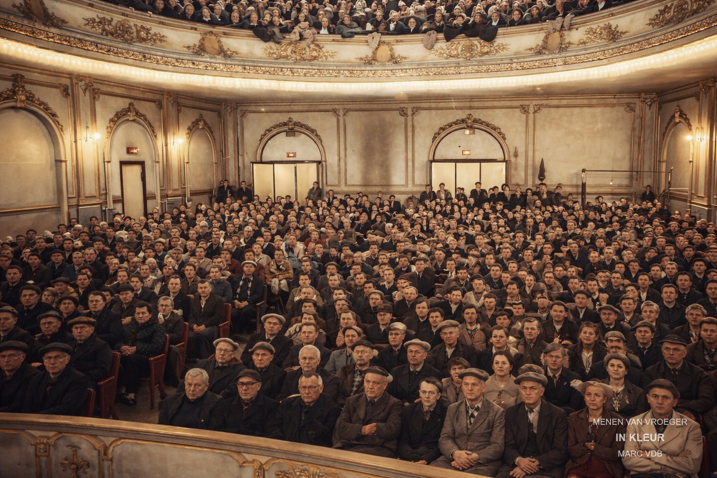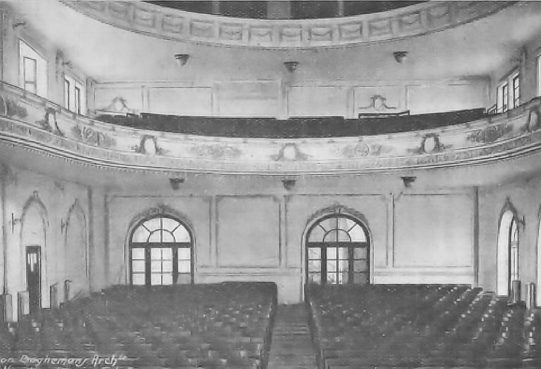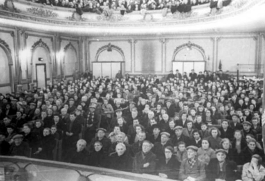 De binnenfoto’s uit de jaren 1950 tonen een zaal die moeiteloos volliep en illustreren waarom het Volkshuis werd beschouwd als een van de mooiste zalen van de regio.