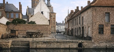 De Poststraat, zichtbaar op de foto, was een belangrijke verbindingsas tussen de Leie en de Grote Markt. Hier kwamen schepen aan, werden goederen gelost, en kruisten handelaars, postkoetsen en stadsbewoners elkaar. De kasseien, de houten karren en de gelaagde gevels ademen de bedrijvigheid van een stad in bloei.